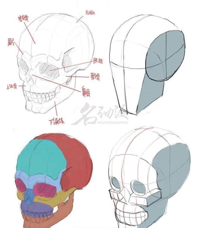 众所周知头骨的结构是非常复杂的,但我们可以总结为“八大块”,即后脑、额骨、眉弓骨、眼眶、颧骨、鼻骨、上腭骨、下颚体。