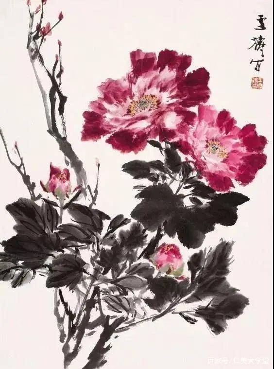 国画绘画技巧:王雪涛先生牡丹花画法欣赏