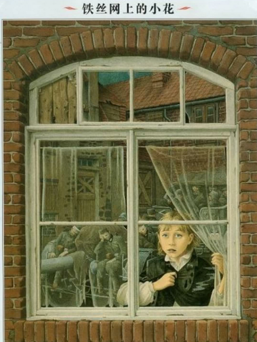 《世界插画大师英诺森提作品:铁丝网上的小花》故事发生在二战时期的一个德国小镇上,一个名叫罗斯·布兰奇的小女孩,很偶然地在郊外的铁丝网里看到了一排瘦骨伶仃的人——那是被关押在纳粹集中营里的犹太人,天真善良的女孩冒着生命危险给他们送去面包,可有一天却倒在了罪恶的枪口下。整本书是一种灰冷的色调,让人压抑、窒息。与这种可怕、绝望的氛围格格不入的,是两片刺眼的红色:一个是纳粹市长手臂上的红袖标,一个是女孩头上鲜红色的蝴蝶结。那红袖标,无疑是战争的血腥与罪恶的象征,而那鲜红色的蝴蝶结,则是一抹生命的亮色。故事的结尾凄美感人,女孩死了,她生前曾经站过的土地上,星星点点地开出了与她那红色的蝴蝶结一样鲜红的番红花。