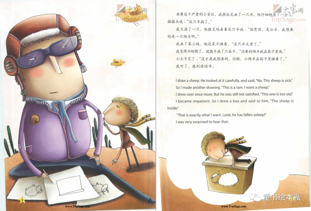 我画了第三幅。他还是不满意,“这只羊太老了。”