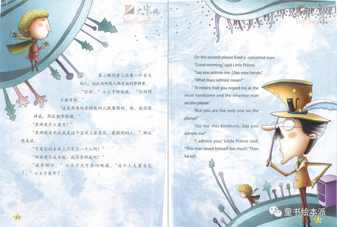 “我崇拜你。”小王子无可奈何地说,“这个人太爱自己了。”小王子离开了。