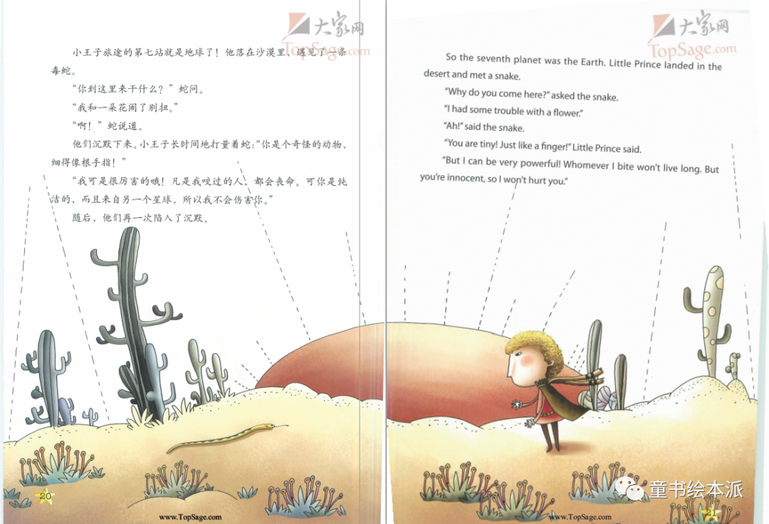 小王子旅途的第七站就是地球了!他落在沙漠里,遇见了一条毒蛇。