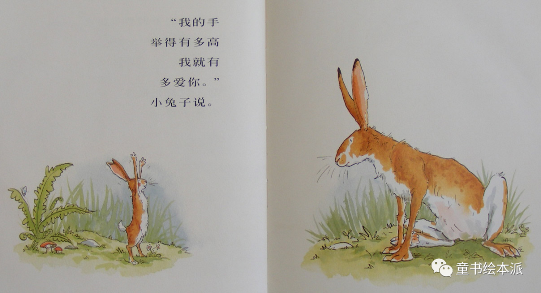 “我的手举得有多高我就有多爱你。”大兔子说。