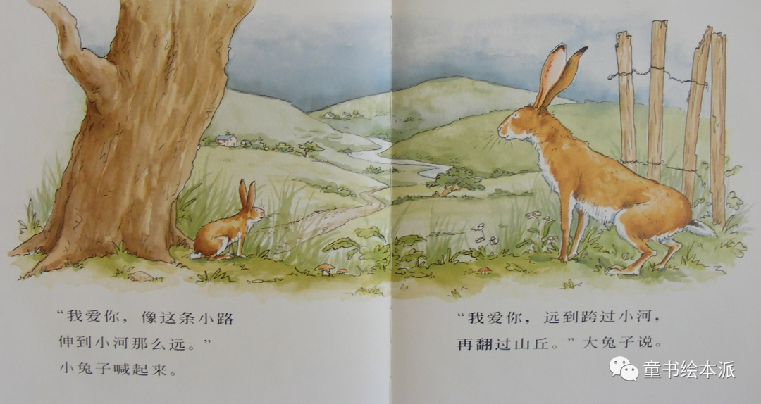 “我爱你,远到跨过小河,再翻过山丘。”大兔子说。