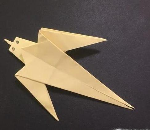 12.将上面2角,向下翻折,形成燕子的翅膀。全部翻折完的效果。
