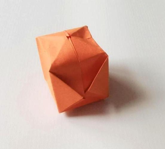 6.将顶上的边角全部折进上一步折出来的缝隙里。每个边角都重复该步骤。