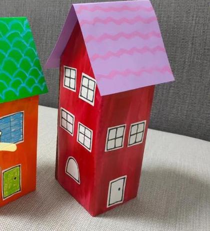 10.简单又好看的废纸盒做房子模型小制作,就这样完成了。