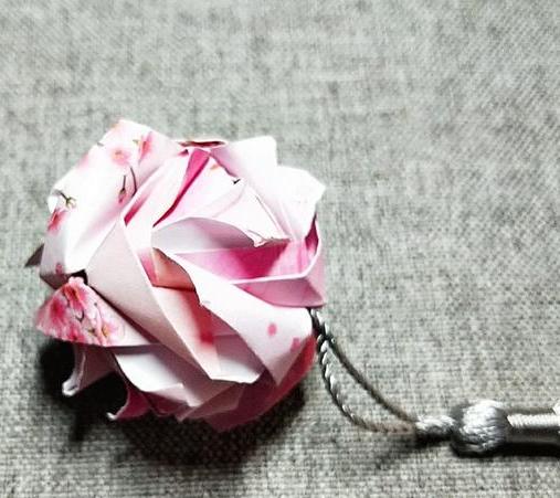 折纸花球总共是需要6个面,每个面是5个小部件,最后可以粘上自己喜欢的珠子,然后在最后粘个流苏。好了,一个漂亮的折纸花球就做好了。