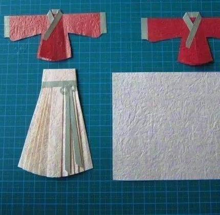 10.用胶水将衣领和腰带粘上。一套折纸汉服就完成了。