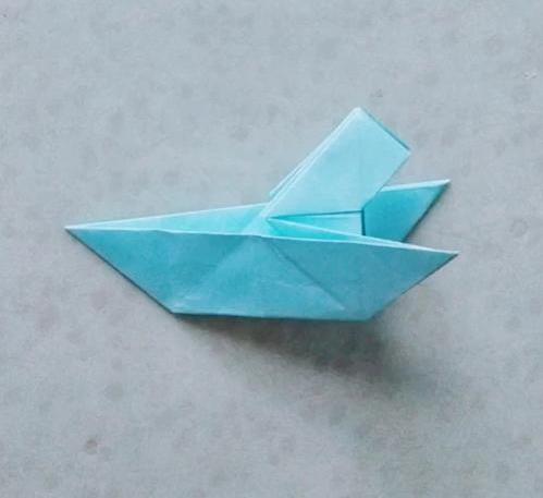 将尖端部分的折纸拉起形成篷的样子。简单的快艇就完成了。